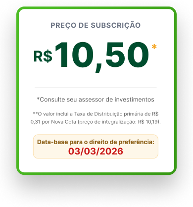 LEIA O PROSPECTO E O REGULAMENTO DO FUNDO ANTES DE ACEITAR A OFERTA, EM ESPECIAL A SEÇÃO FATORES DE RISCO.