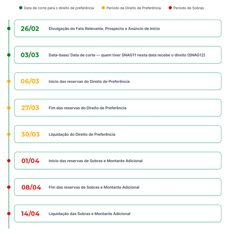 LEIA O PROSPECTO E O REGULAMENTO DO FUNDO ANTES DE ACEITAR A OFERTA, EM ESPECIAL A SEÇÃO DOS FATORES DE RISCO. Entre em contato com o seu assessor de investimentos e avalie a adequação do investimento ao seu perfil. Os fundos de investimento não contam com garantia do administrador do fundo, do gestor da carteira, de qualquer mecanismo de seguro ou do Fundo Garantidor de Crédito (FGC). A seguir seguem listados os 5 principais fatores de risco da Oferta e do Fundo:(i) Risco de não concretização da Oferta,(ii) Risco do Estudo de Viabilidade, (iii) Risco de não Materialização das Perspectivas Contidas nos Documentos da Oferta,(iv) Acontecimentos e a percepção de riscos em outros países, sobretudo em países de economia emergente e nos Estados Unidos, podem prejudicar o preço de mercado dos valores mobiliários brasileiros, inclusive o preço de mercado das Cotas e(v) Risco da Distribuição Parcial. O Prospecto está disponível na seguinte página: https://www.suno.com.br/asset/fundos/snag11/ (Para acessar o documento, neste website acessar o botão “Relat. em destaque”). O REGISTRO DA OFERTA NÃO IMPLICA, POR PARTE DA CVM, EM GARANTIA DE VERACIDADE DAS INFORMAÇÕES PRESTADAS OU EM JULGAMENTO SOBRE A QUALIDADE DO FUNDO OU DAS COTAS A SEREM DISTRIBUÍDAS. AS INFORMAÇÕES APRESENTADAS NESTE MATERIAL SÃO BASEADAS NA ANÁLISE E NA ESTRATÉGIA DE INVESTIMENTO QUE O GESTOR PRETENDE ADOTAR PARA O FUNDO. OS RESULTADOS REAIS DO FUNDO PODERÃO SER SIGNIFICATIVAMENTE DIFERENTES. NÃO HÁ GARANTIA DE QUE A CARTEIRA DO FUNDO APRESENTARÁ CARACTERÍSTICAS SEMELHANTES ÀS APRESENTADAS NESTE MATERIAL. A RENTABILIDADE PASSADA NÃO REPRESENTA GARANTIA DE RENTABILIDADE FUTURA. A CVM NÃO REALIZOU ANÁLISE PRÉVIA DO CONTEÚDO DO PROSPECTO NEM DOS DOCUMENTOS DA OFERTA. Saiba mais em: https://www.suno.com.br/asset/fundos/snag11/