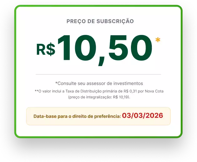 LEIA O PROSPECTO E O REGULAMENTO DO FUNDO ANTES DE ACEITAR A OFERTA, EM ESPECIAL A SEÇÃO FATORES DE RISCO.